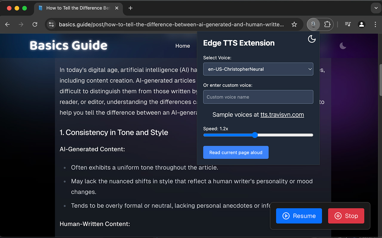 - High-Quality TTS: Emulates the Edge browser's Read Aloud functionality for natural voice synthesis.