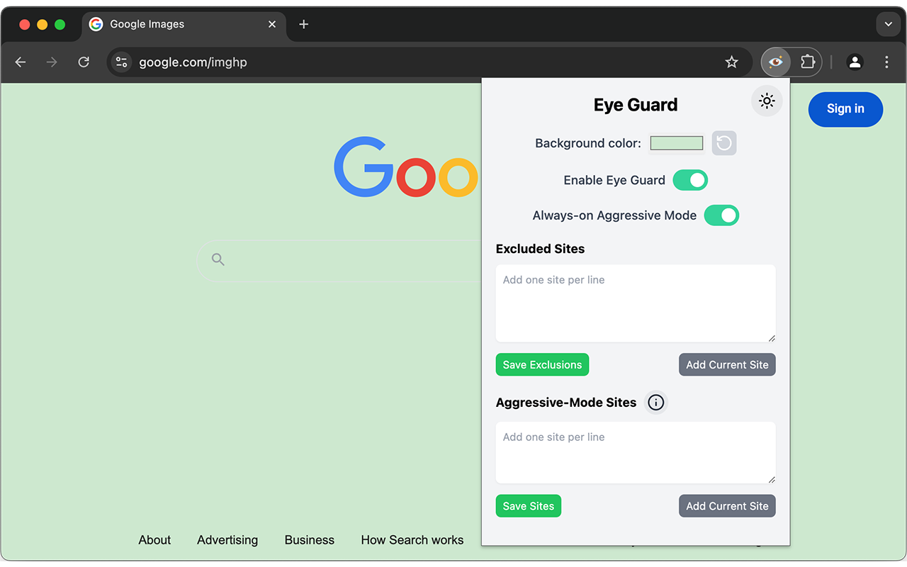 Screenshot of Chrome Extension — Eye Guard – Reduce Eye Strain
